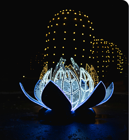 Notre mission est d’expandre le monde interactif en dehors de ses contextes traditionnels, soit les écrans et les salles d’intérieur. Nous vous invitons à sortir de votre lit et des grandes villes pour venir vivre une expérience haute en couleur dans un jardin en lumière.