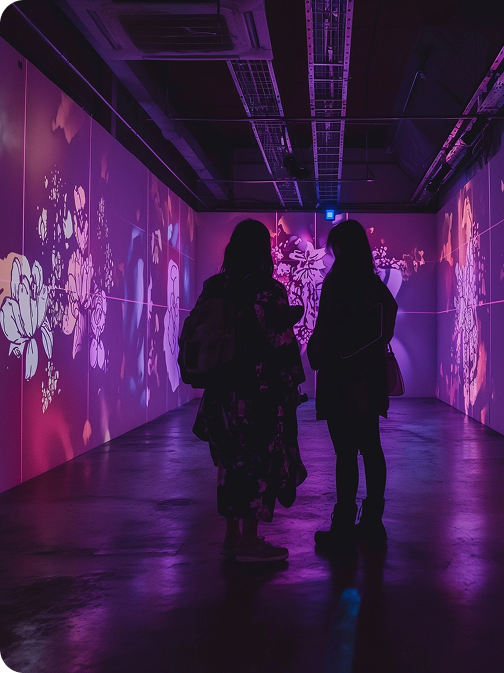 Notre mission est d’expandre le monde interactif en dehors de ses contextes traditionnels, soit les écrans et les salles d’intérieur. Nous vous invitons à sortir de votre lit et des grandes villes pour venir vivre une expérience haute en couleur dans un jardins en lumière.